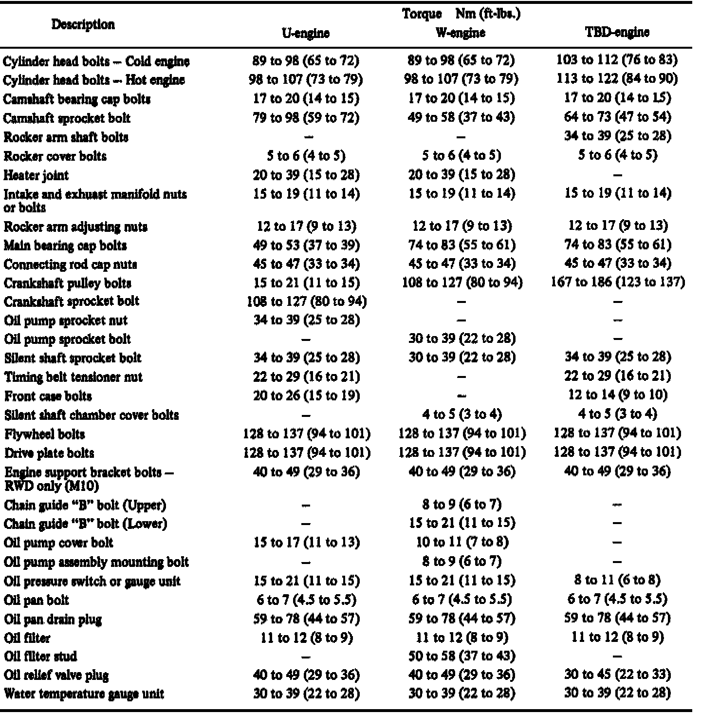 Torque Specifications: