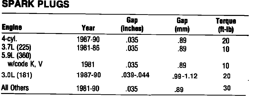Spark Plug: Specifications