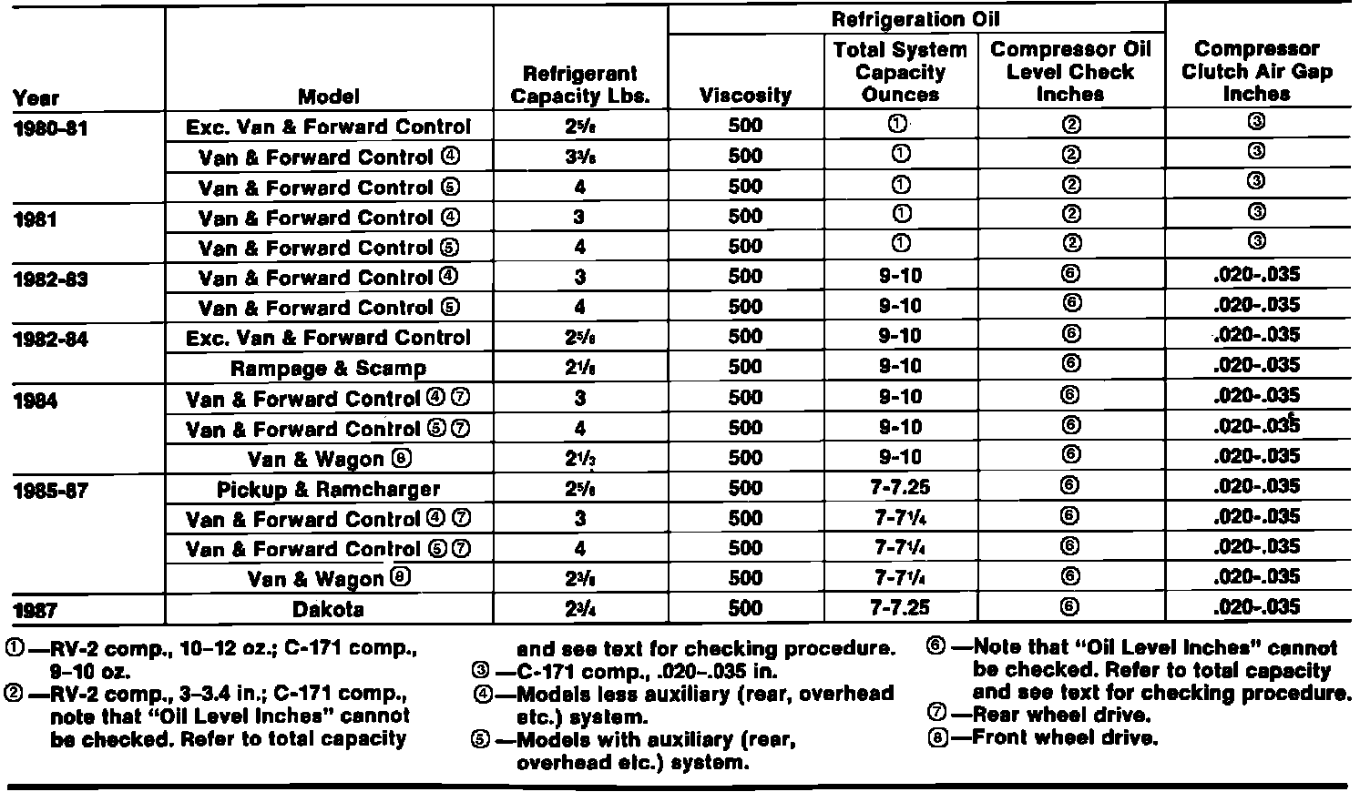 A/C DATA TABLE:
