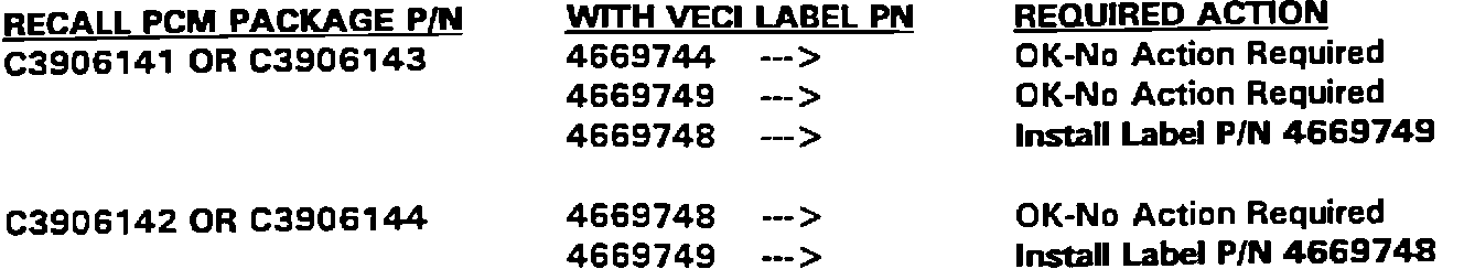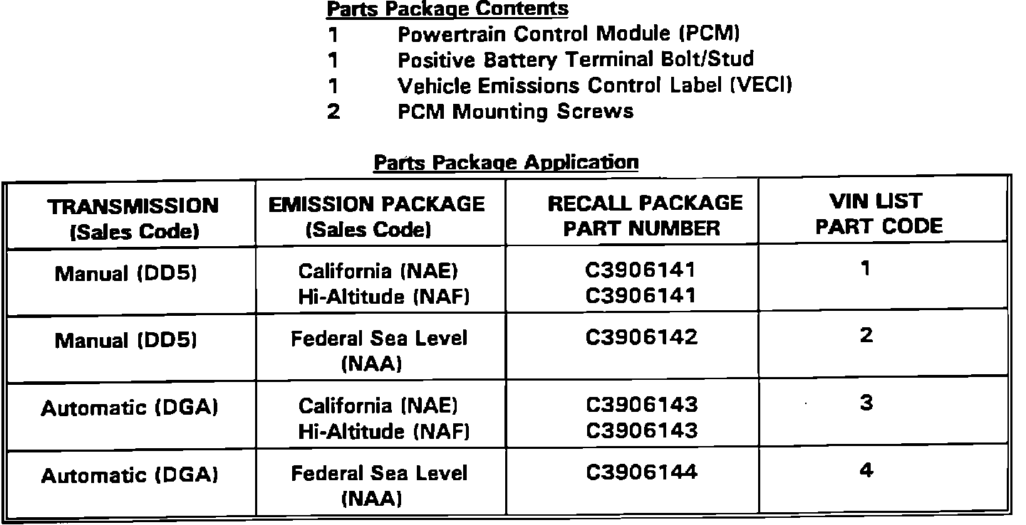 PARTS PACKAGE C3906141, C3906142, C3906143, C3906144 SAFETY RECALL # 614 - Powertrain Control Module (PCM)