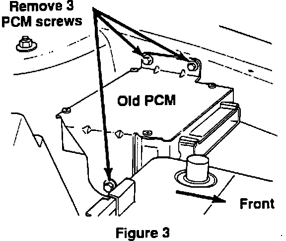 5. Remove the three PCM mounting screws, disconnect wiring take-out clip and remove PCM with bracket assembly (Figure 3).