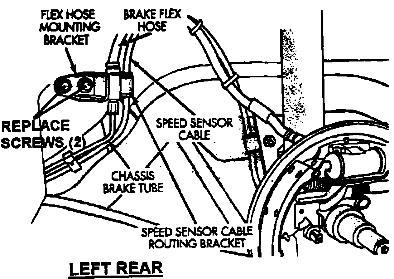 REPLACEMENT OF REAR BRAKE FLEX HOSE MOUNTING BRACKET SCREWS