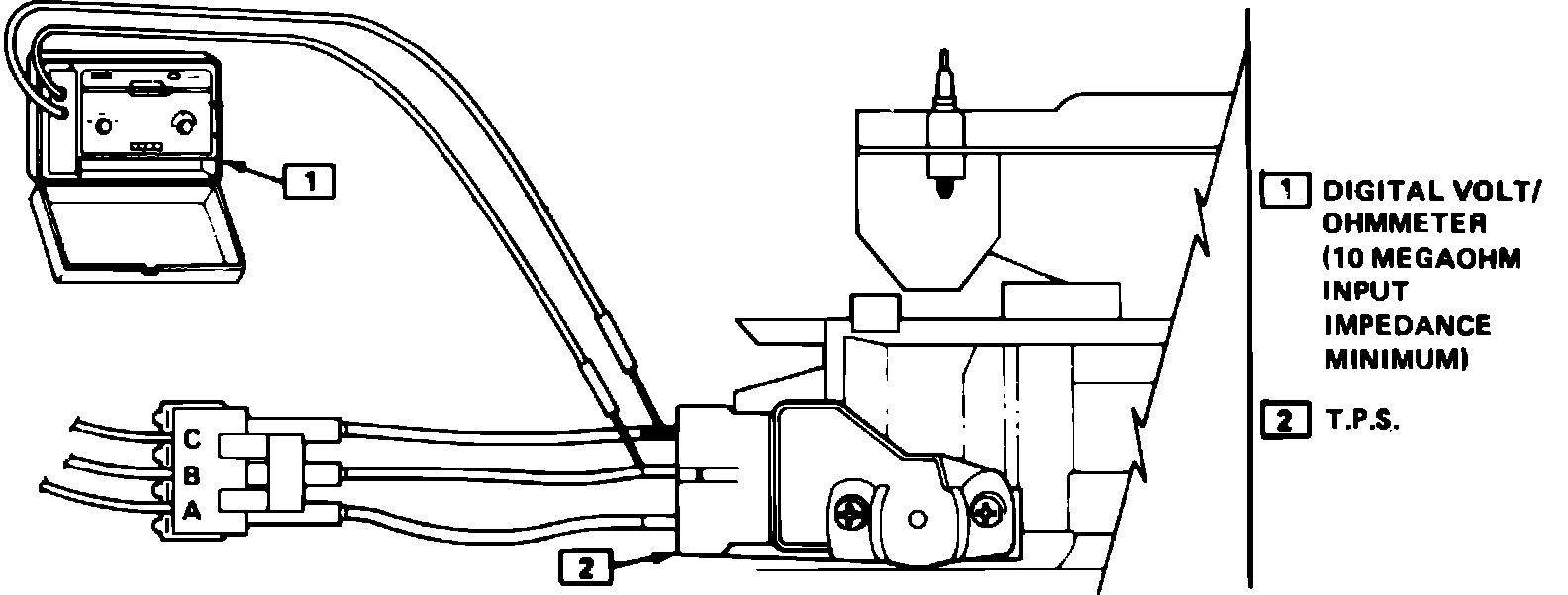 1. Remove TBI unit then the TPS as described previously. Loosely reinstall sensor and position TBI unit on intake manifold without installing bolts. Remove fuel pump fuse.