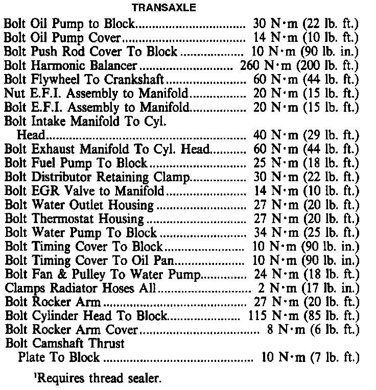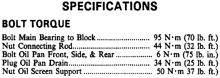 Torque Specifications: