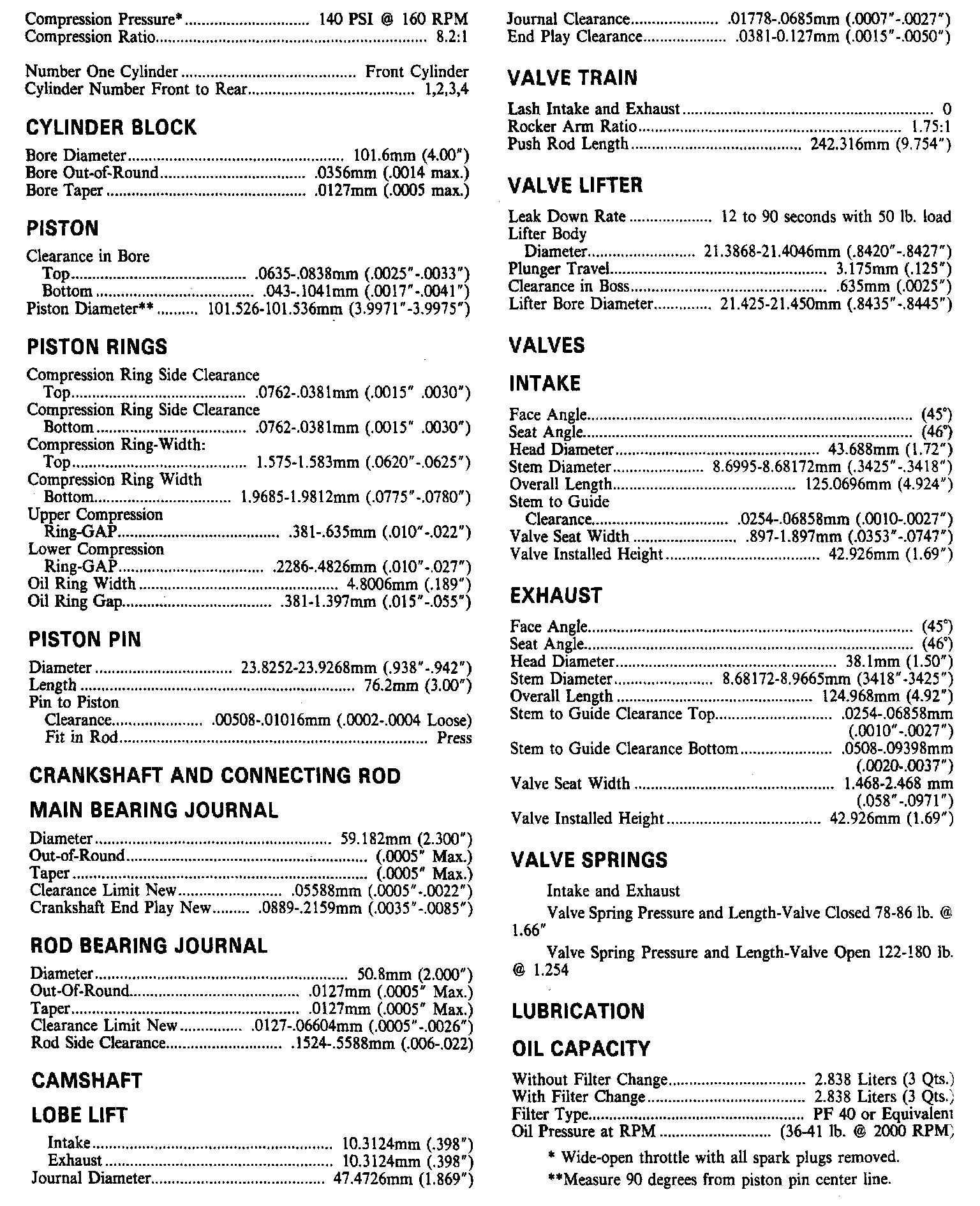 Engine Specifications: