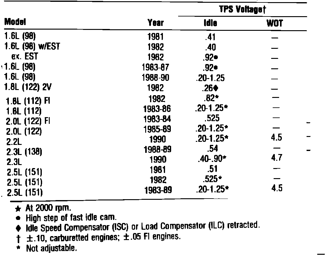 Throttle Position Sensor: Specifications