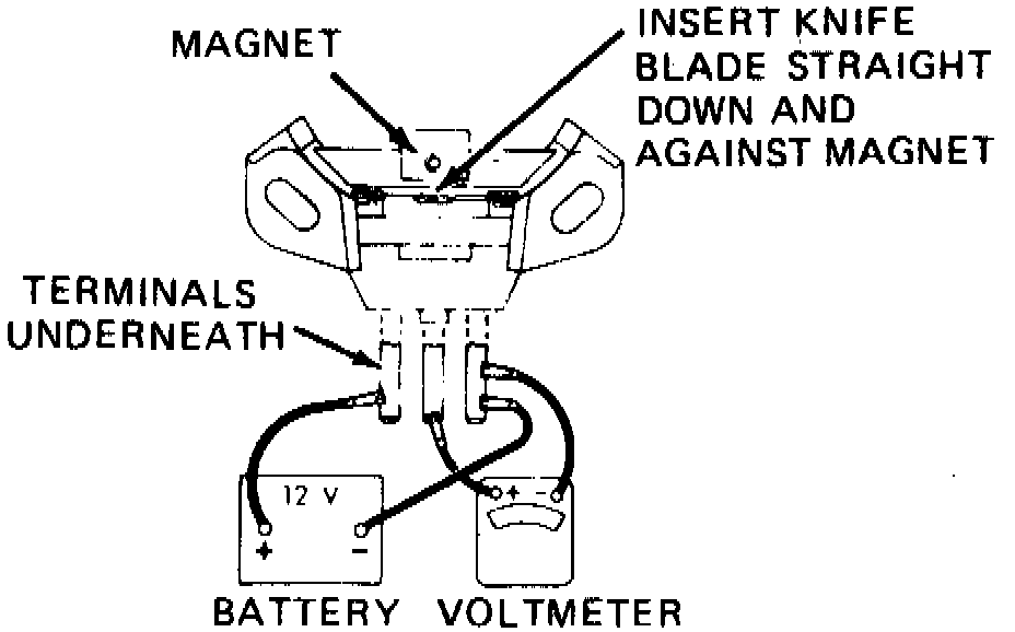 3. Insert knife blade as shown in Figure. Voltmeter should read within 0.5 volts of battery voltage. If not, replace Hall Effect switch.