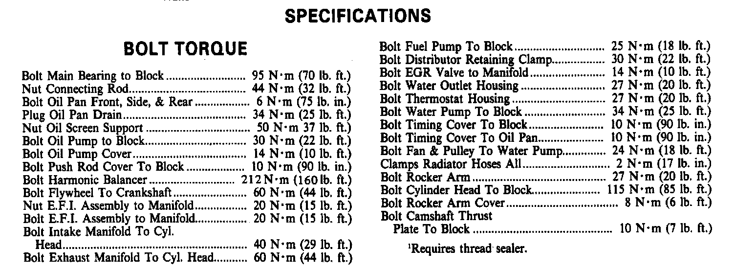 Torque Specifications: