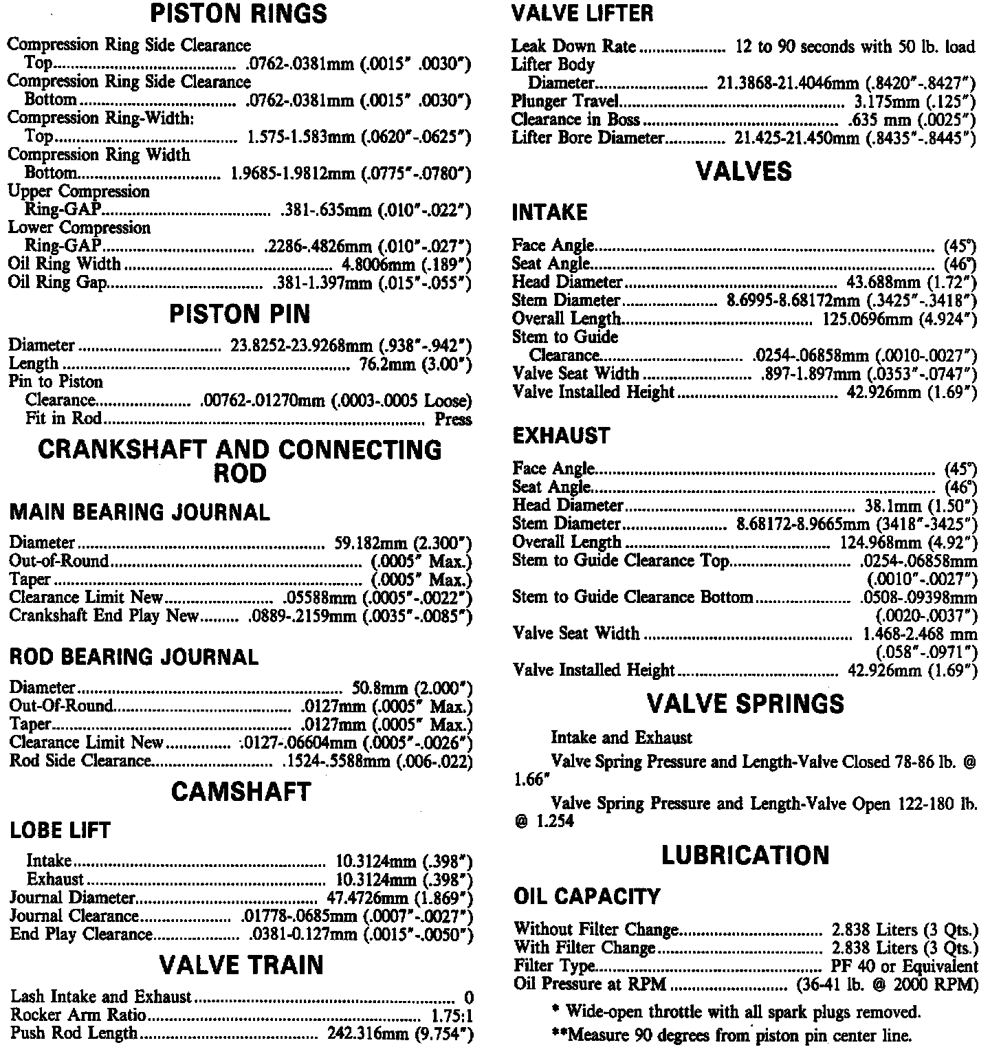 Engine Specifications: