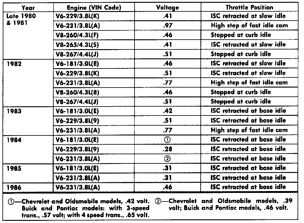 Home >> Pontiac >> 1982 >> Grand Prix V6-231 3.8L >> Repair and Diagnosis >> Powertrain Management >> Computers and Control Systems >> Throttle Position Sensor >> Adjustments