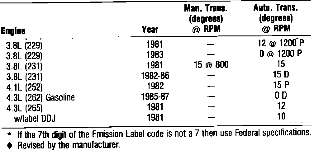Ignition Timing: Specifications