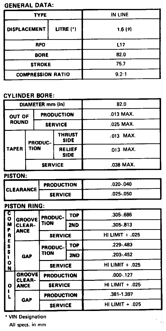 Engine Specifications: