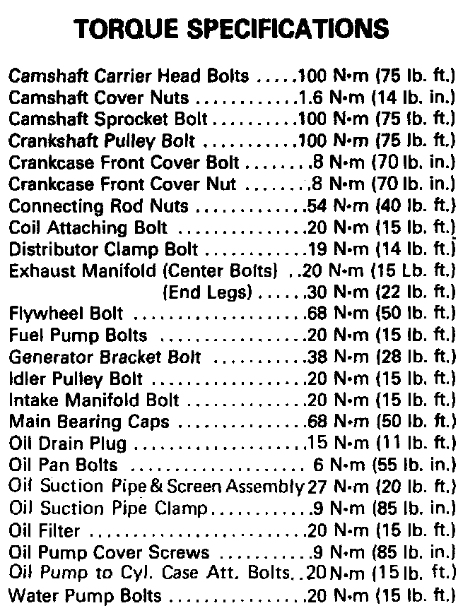 Torque Specifications: