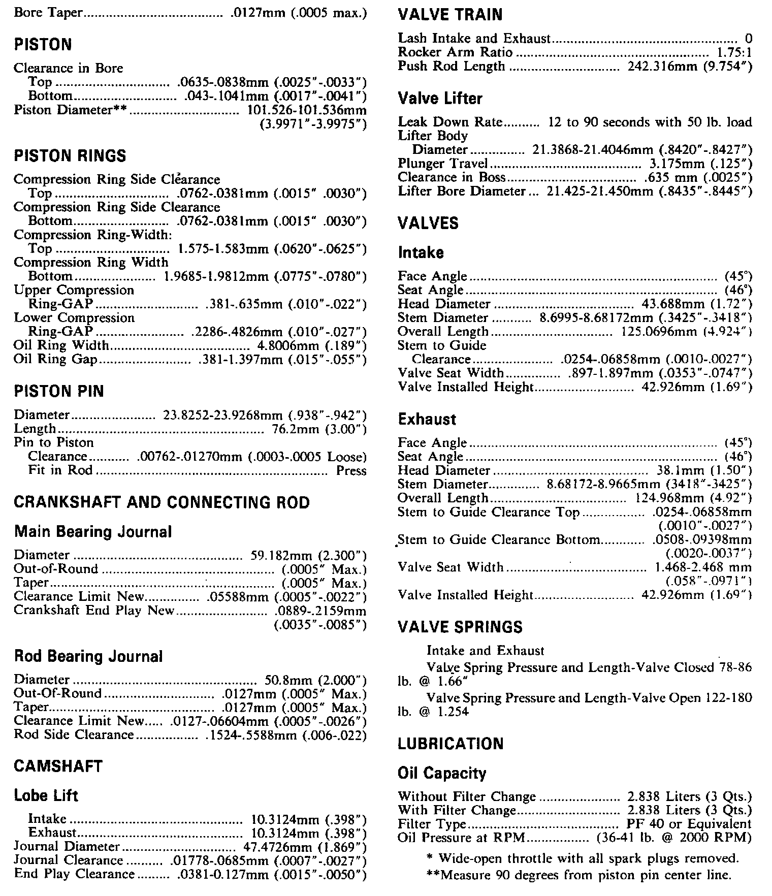 Continued Engine Specifications: