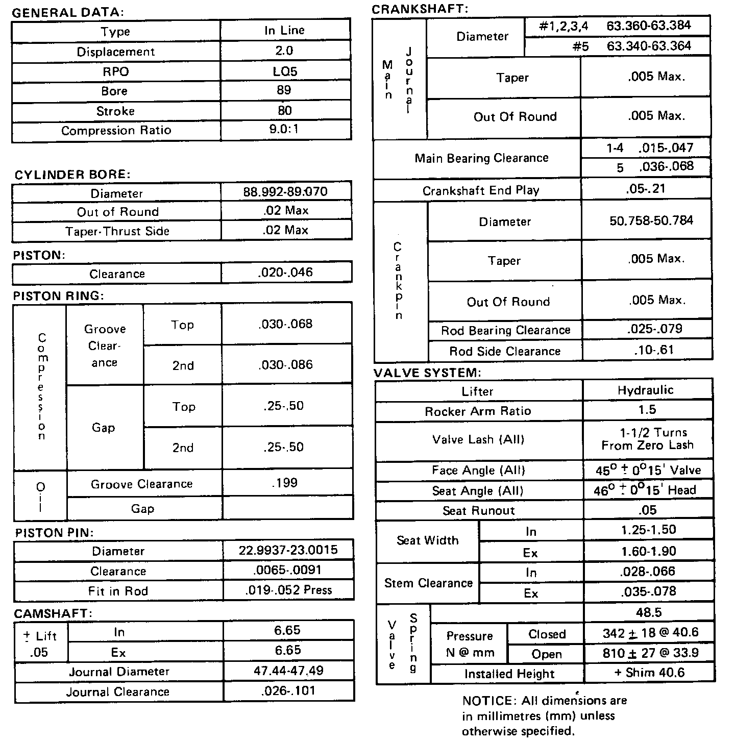 Engine Specifications: