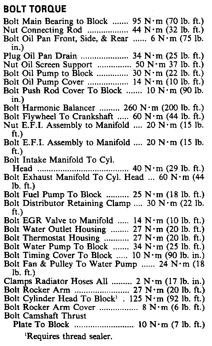 Torque Specifications: