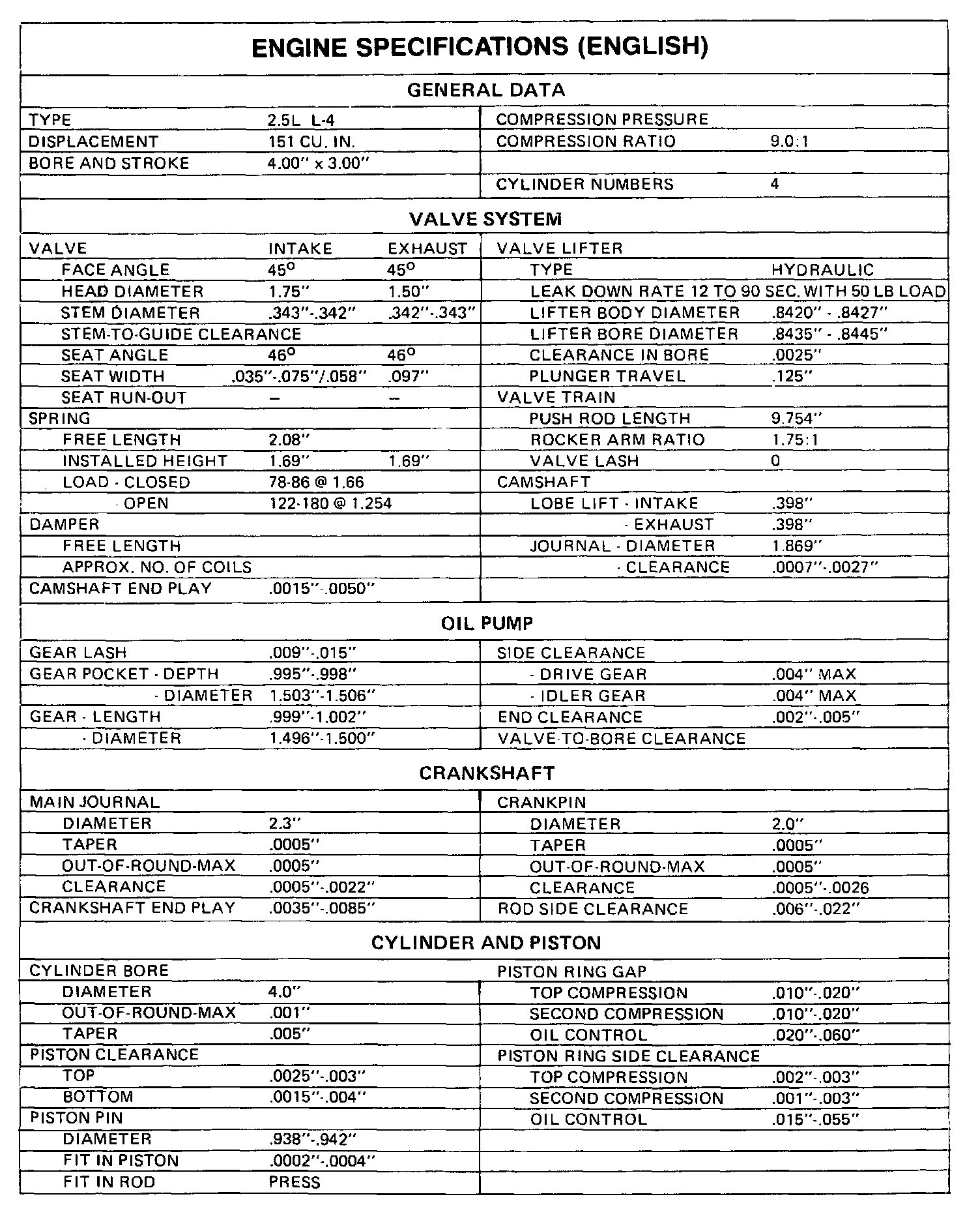 Firebird L4-151 2.5L