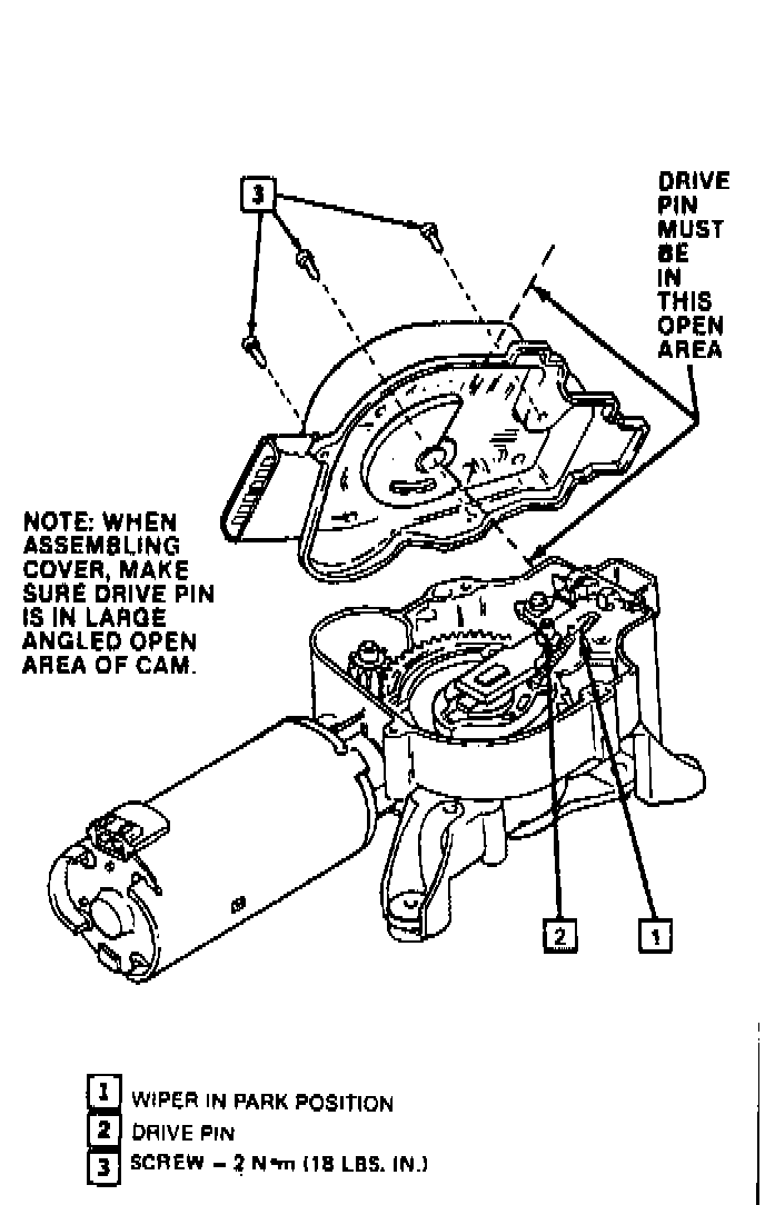 Note: Always install cover assembly with wiper in park position and with cam in position shown in image, so as not to damage cam on drive pawl.