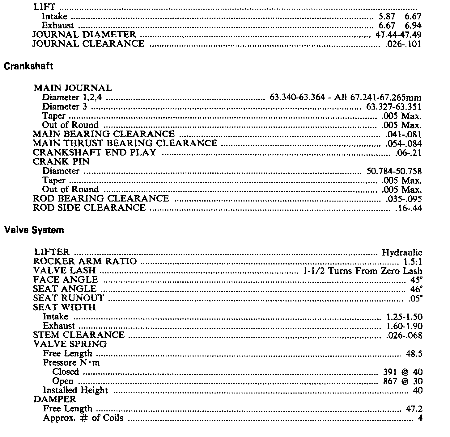 Continued Engine Specifications: