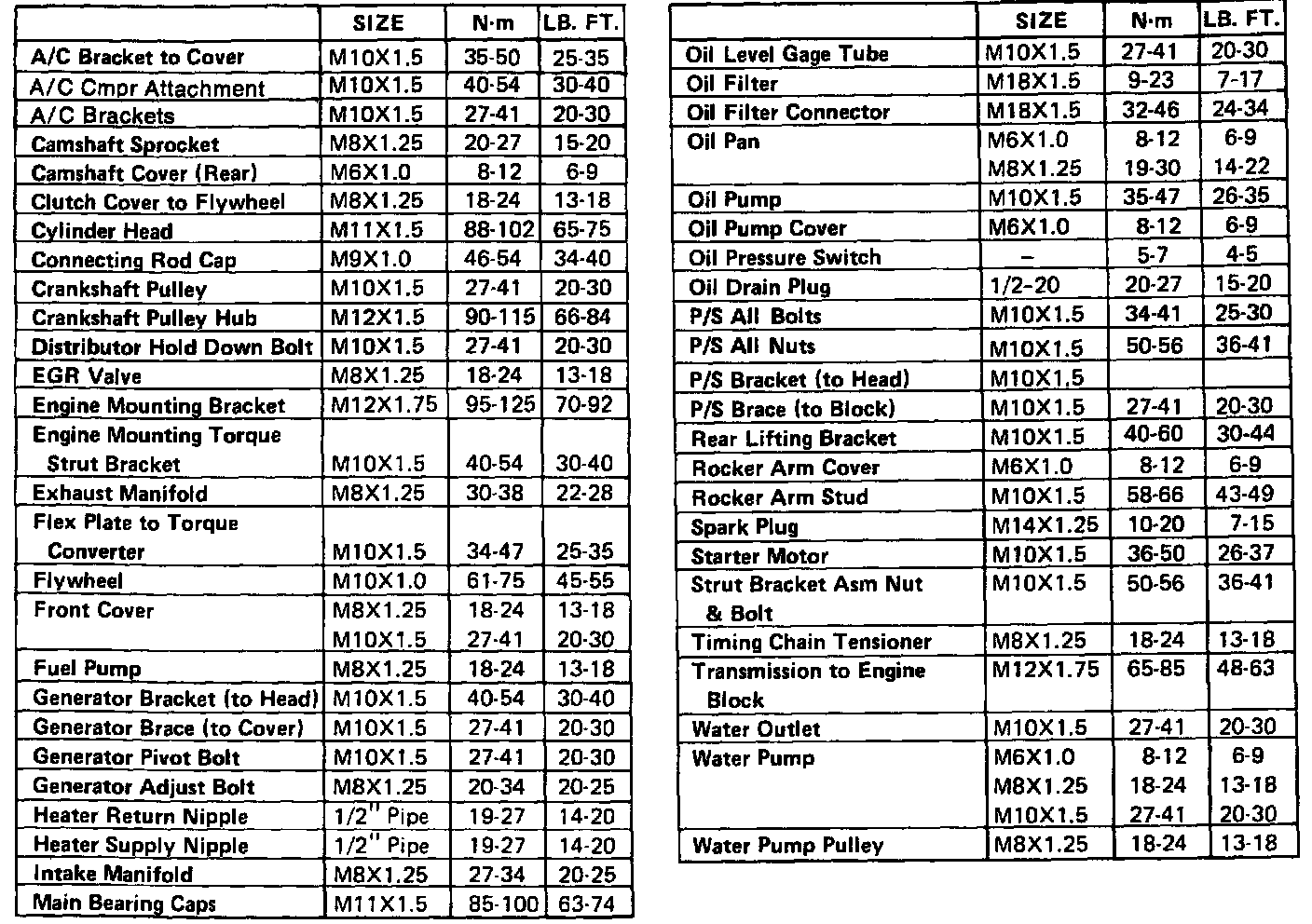 Torque Specifications: