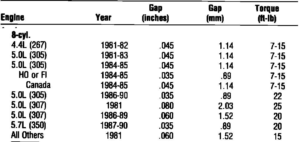 Spark Plug: Specifications