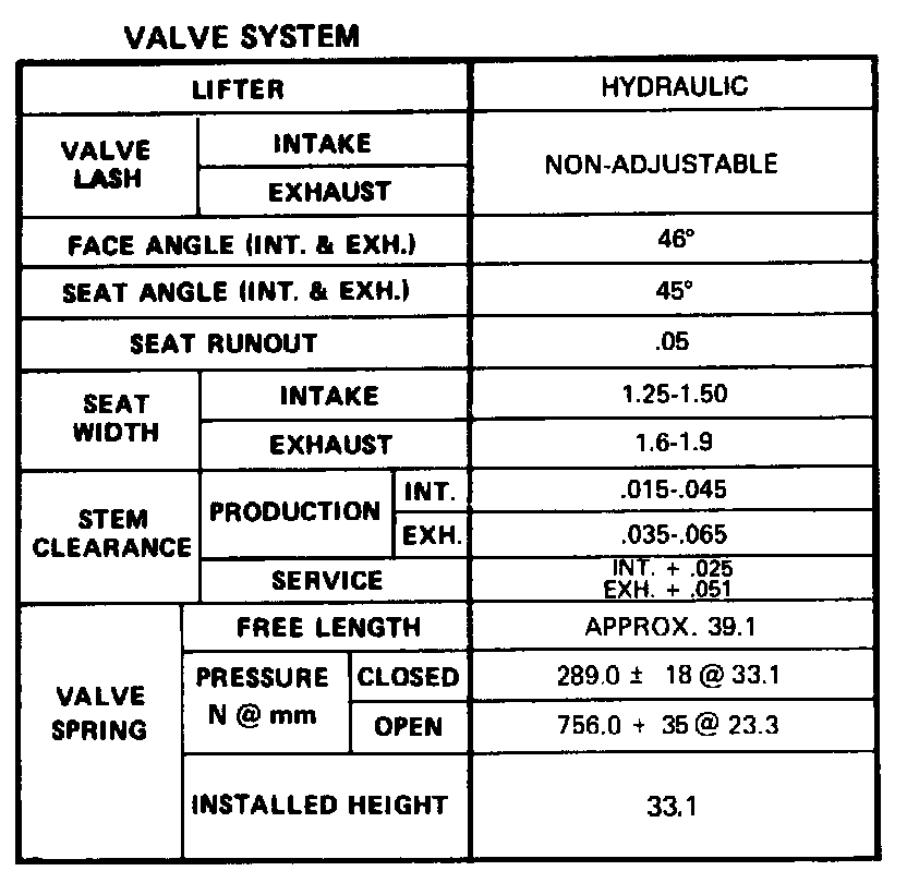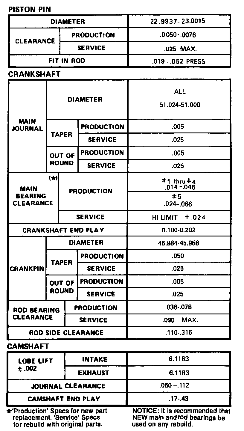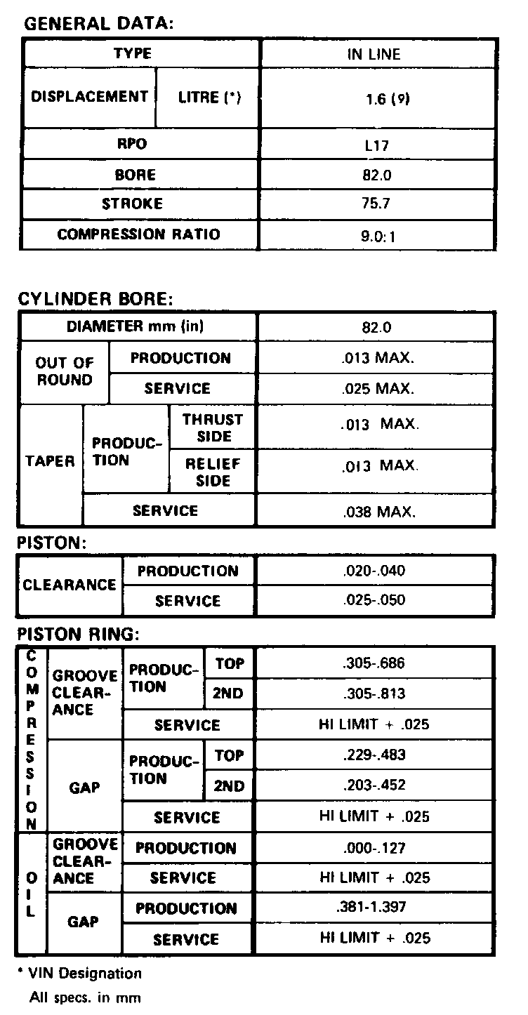 Continued Engine Specifications: