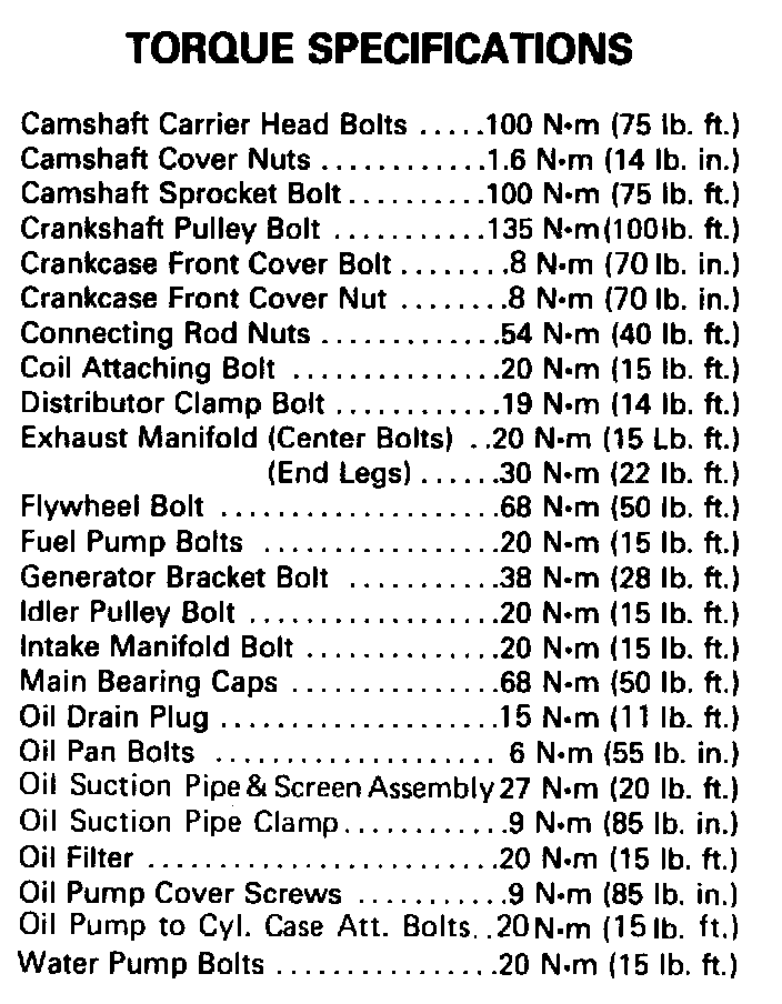 Torque Specifications:
