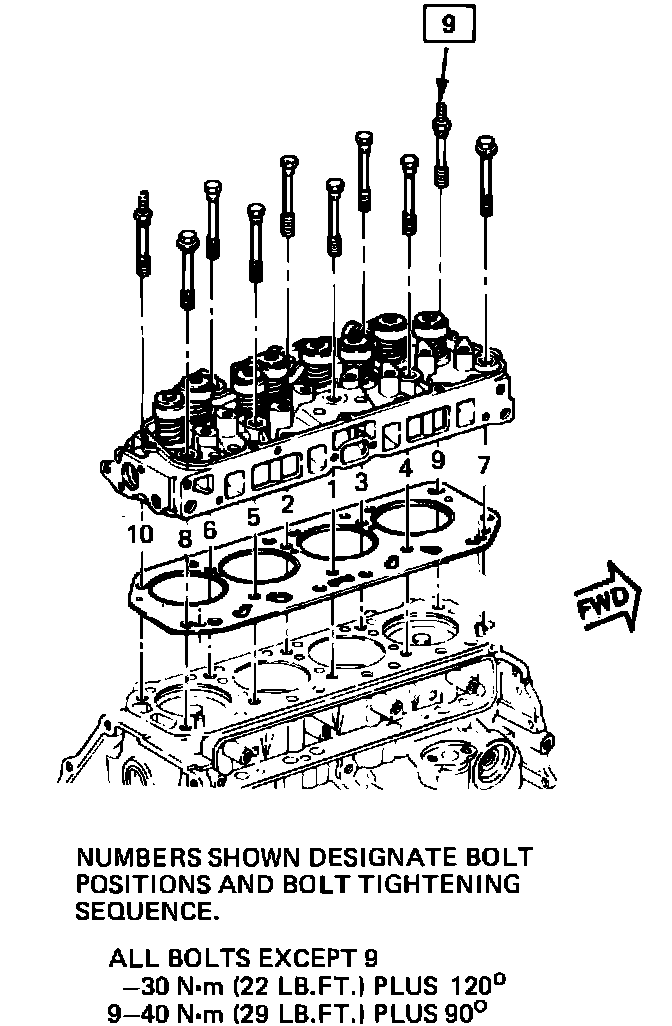 A new bolt tightening procedure has been developed for the 2.5L engine which improves head to block clamping force and assures more uniform tightening.