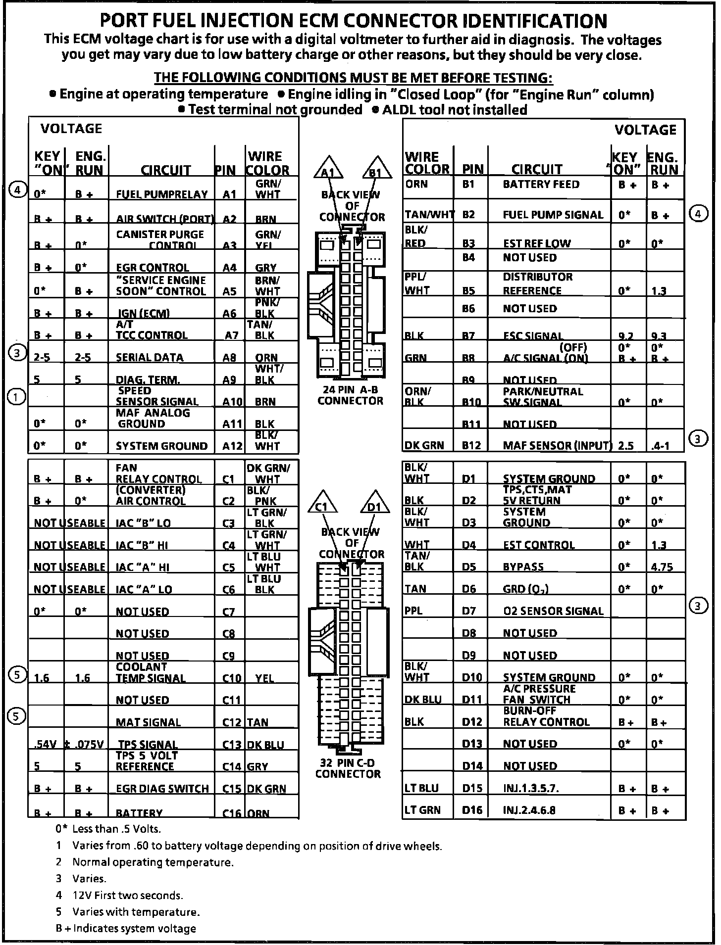 ECM Connector Terminal End View: