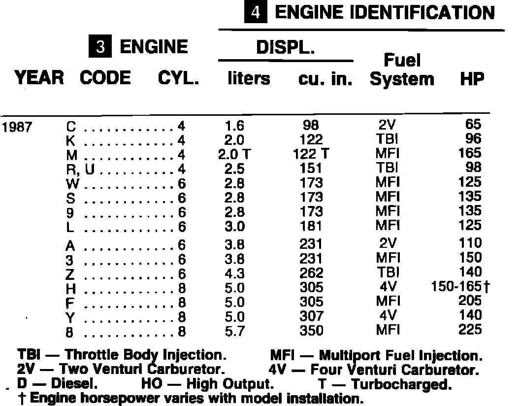 ENGINE IDENTIFICATION 1987: