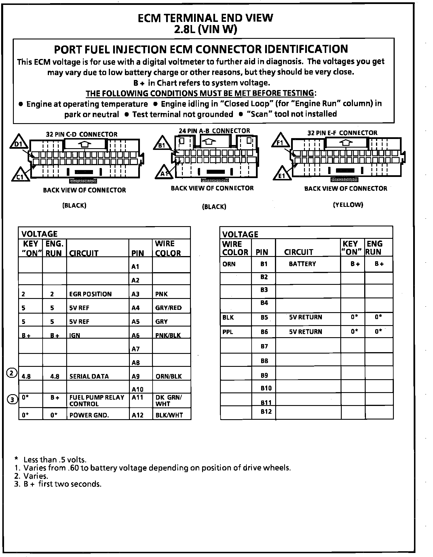 ECM Terminal I.D. & Voltage Specifications (Part 1 of 2):