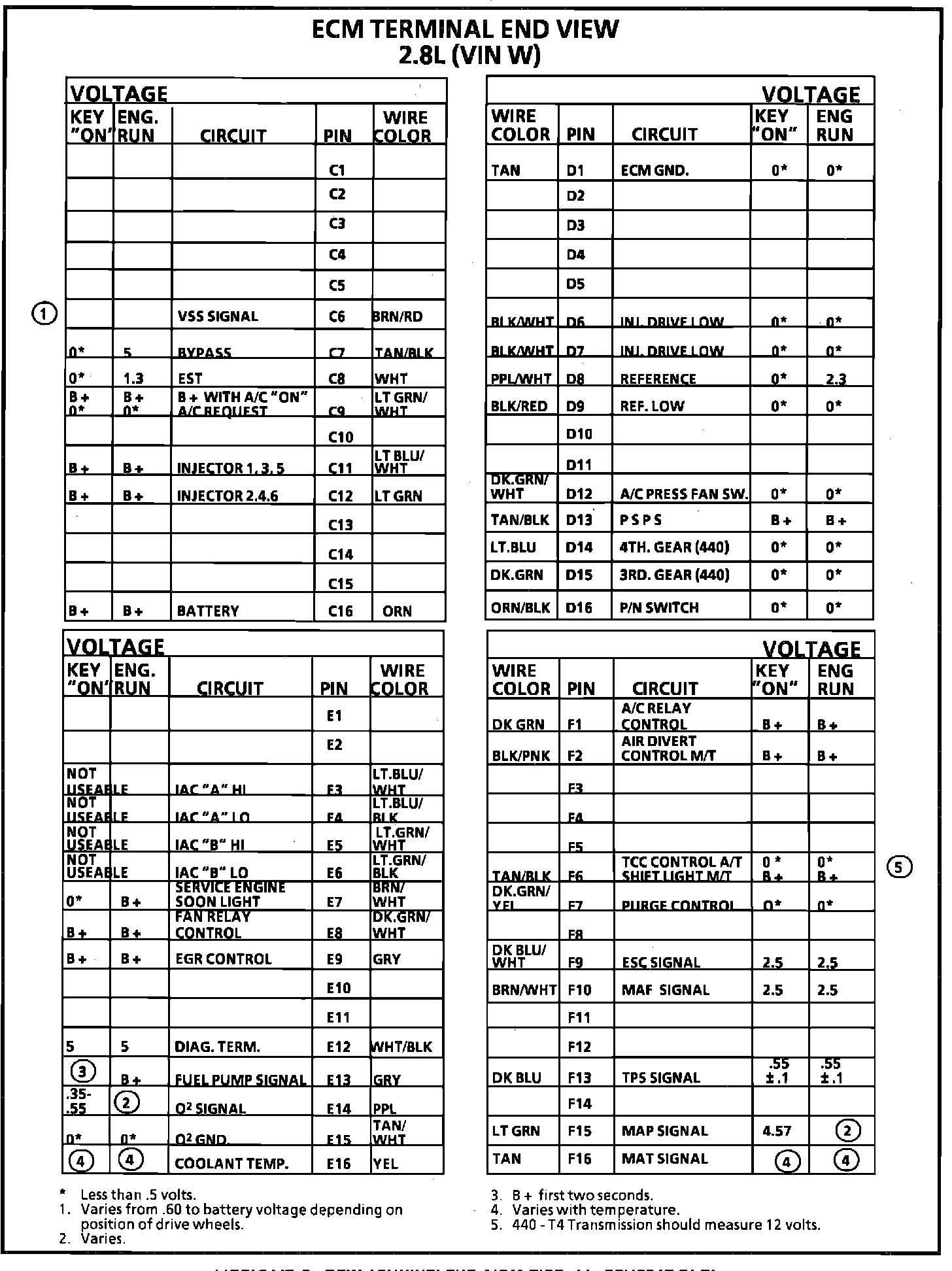 ECM Terminal I.D. & Voltage Specifications (Part 2 of 2):
