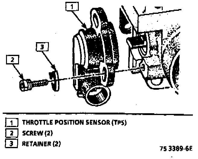 ^ With throttle valve in the closed position, install throttle position sensor on throttle body assembly, making sure TPS lever lines up with the TPS drive letter on the throttle shaft.