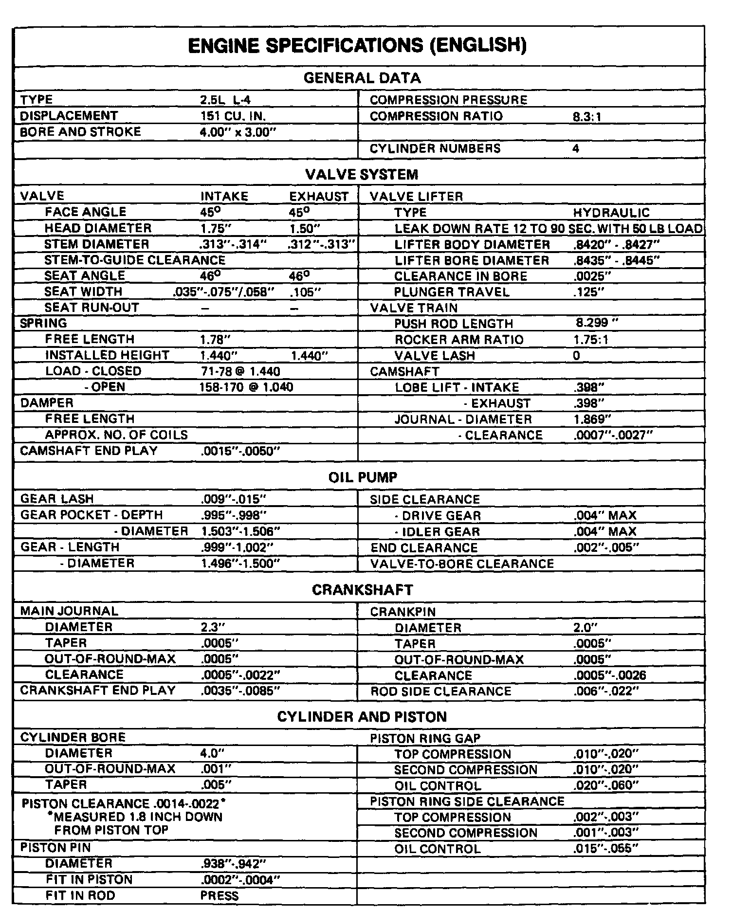 Fiero L4-151 2.5L
