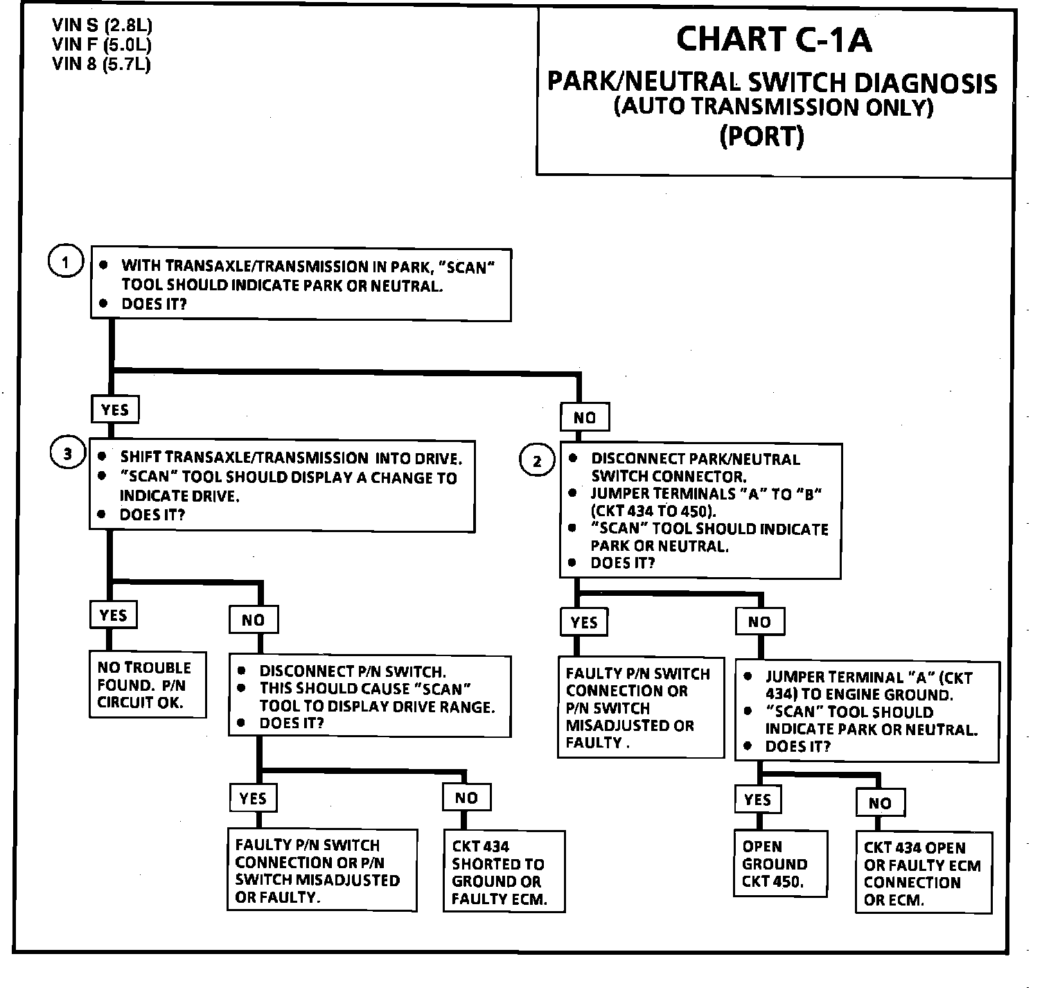 CHART C-1A PARK/NEUTRAL SWITCH DIAGNOSIS (AUTO TRANSMISSION ONLY)