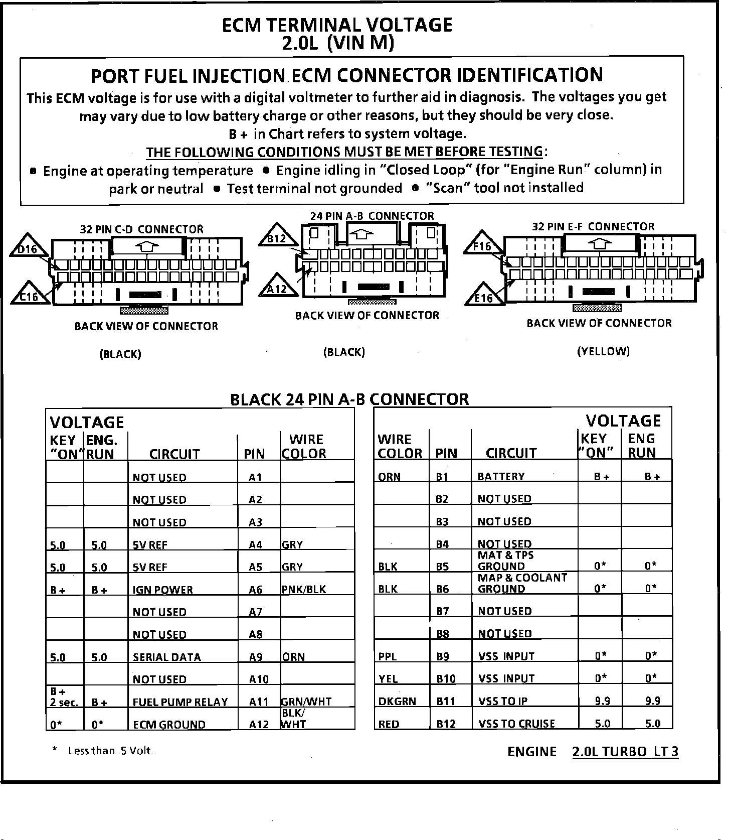 ECM Terminal ID & Voltage Specifications (Part 1 of 2).: