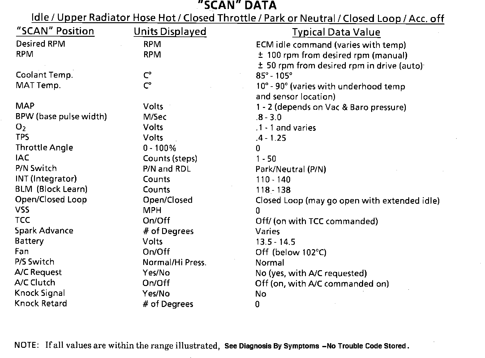 Typical "Scan" Data Values: