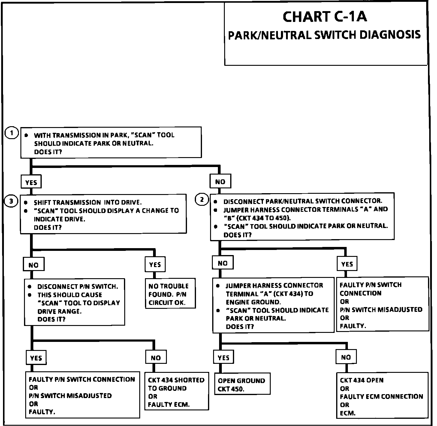 1. Checks for a closed switch to ground in park position. Different makes of "Scan" tools will read P/N differently. Refer to operators manual for type of display used for a specific tool.