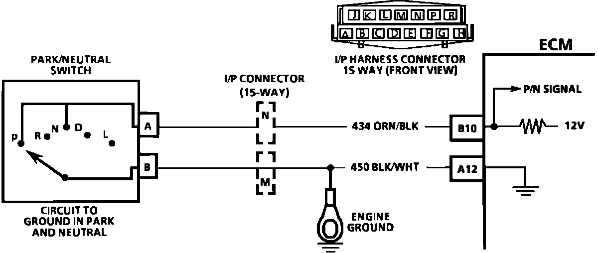^ If CKT 434 always indicates drive (open), a drop in the idle may exist when the gear selector is moved into drive range.