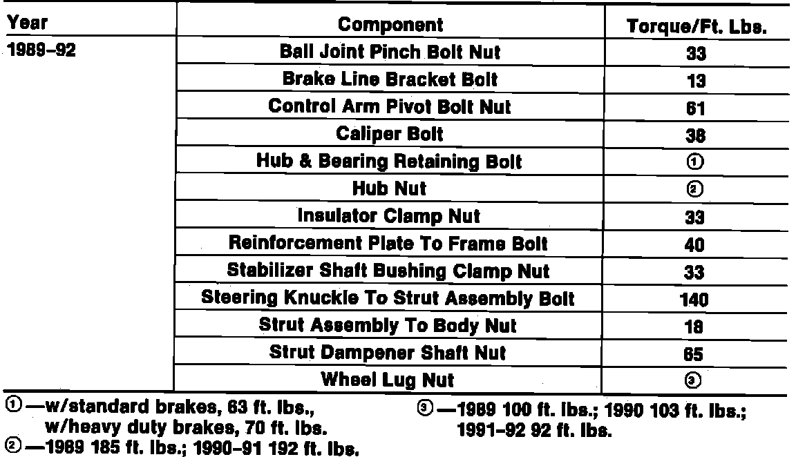 Tightening Specifications: