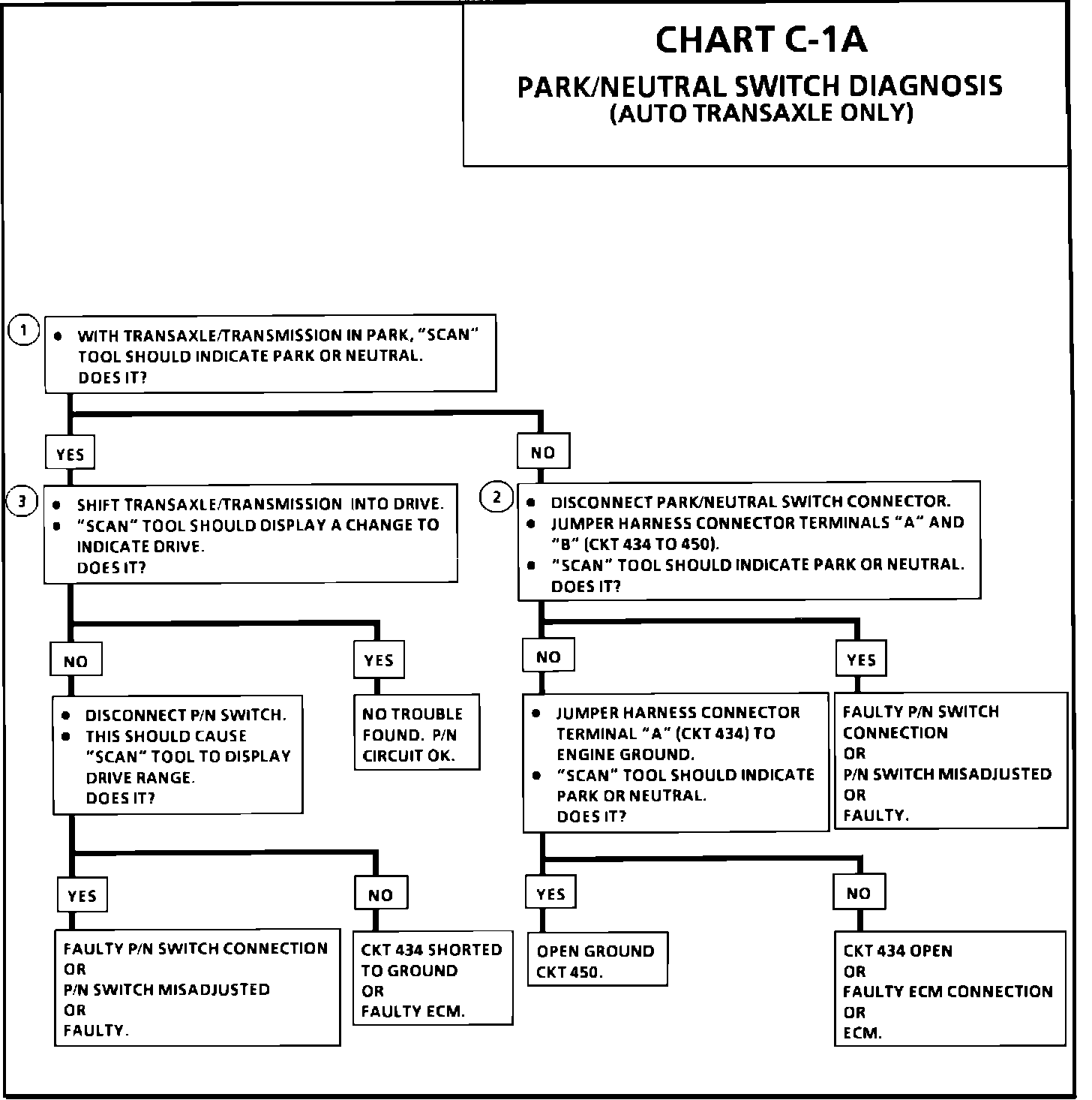 1. Checks for a closed switch to ground in park position. Different makes of "Scan" tools will read P/N differently. Refer to operators manual for type of display used for a specific tool.
