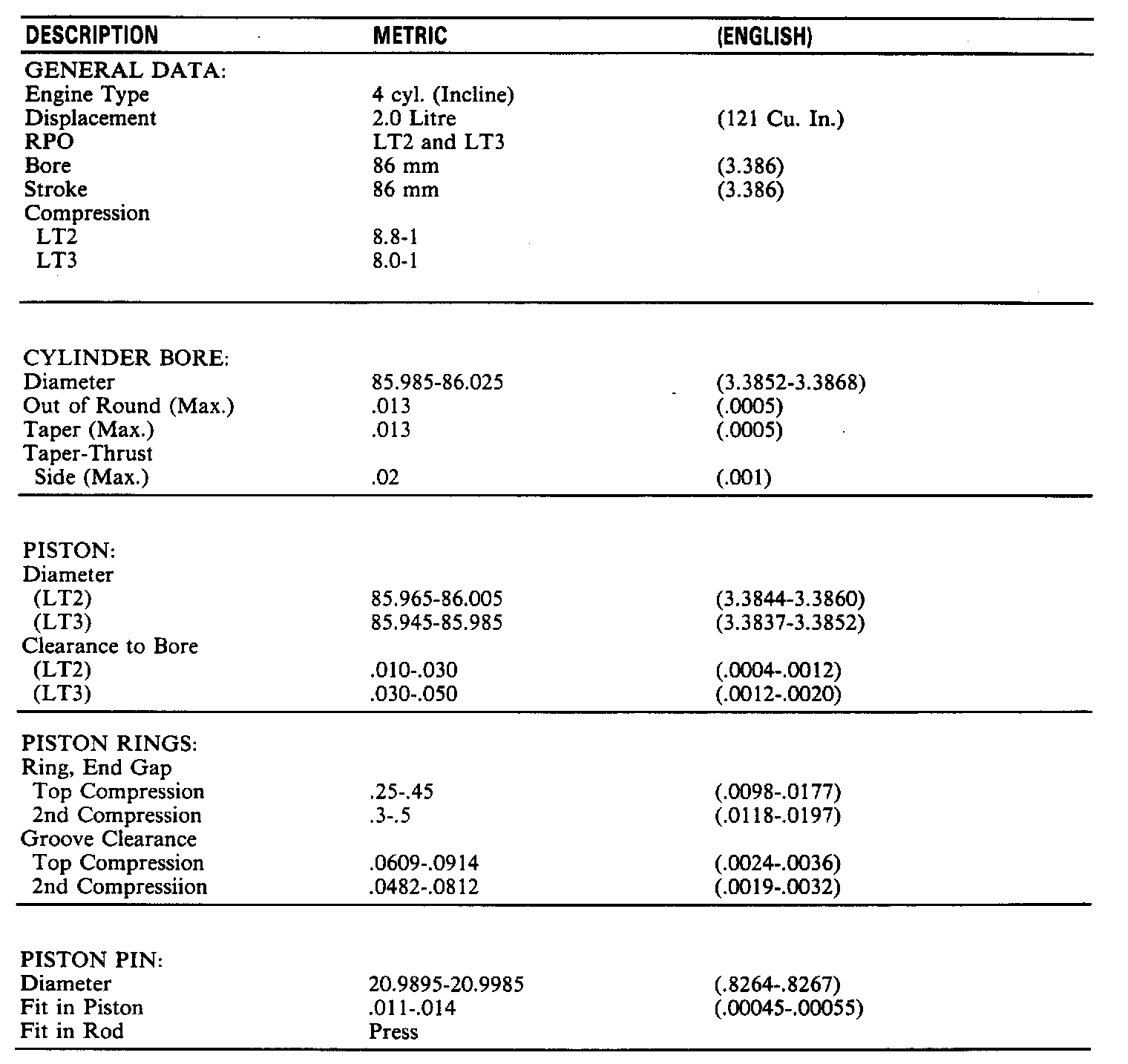 Engine Specifications: