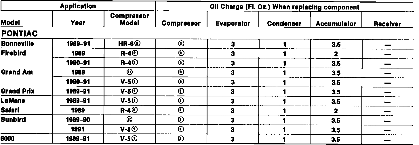 Oil Charge Data Table: