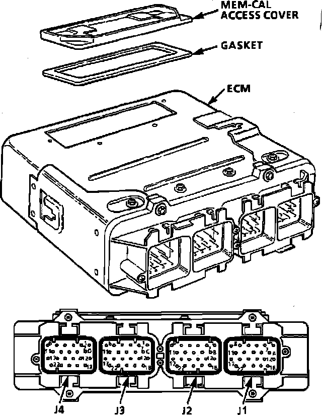 This vehicle is equipped with an ECM with two parts for service, a controller which is the ECM itself and a memory calibration unit called a MEM-CAL or PROM.