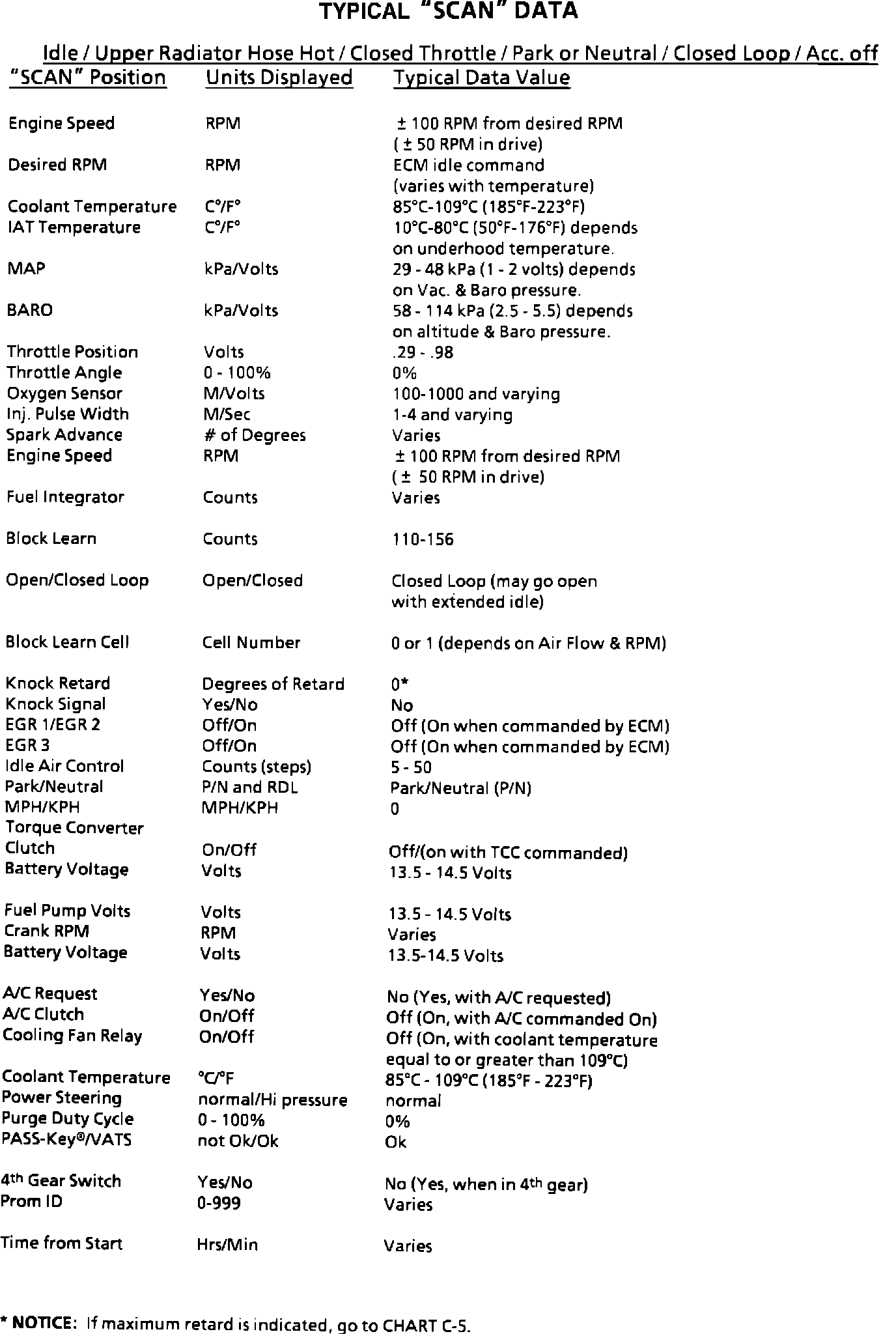 7. Comparison of actual control system data with the typical values is a quick check to determine if any parameter is not within limits. Keep in mind that a base engine problem (i.e. advanced cam timing) may substantially alter sensor values.