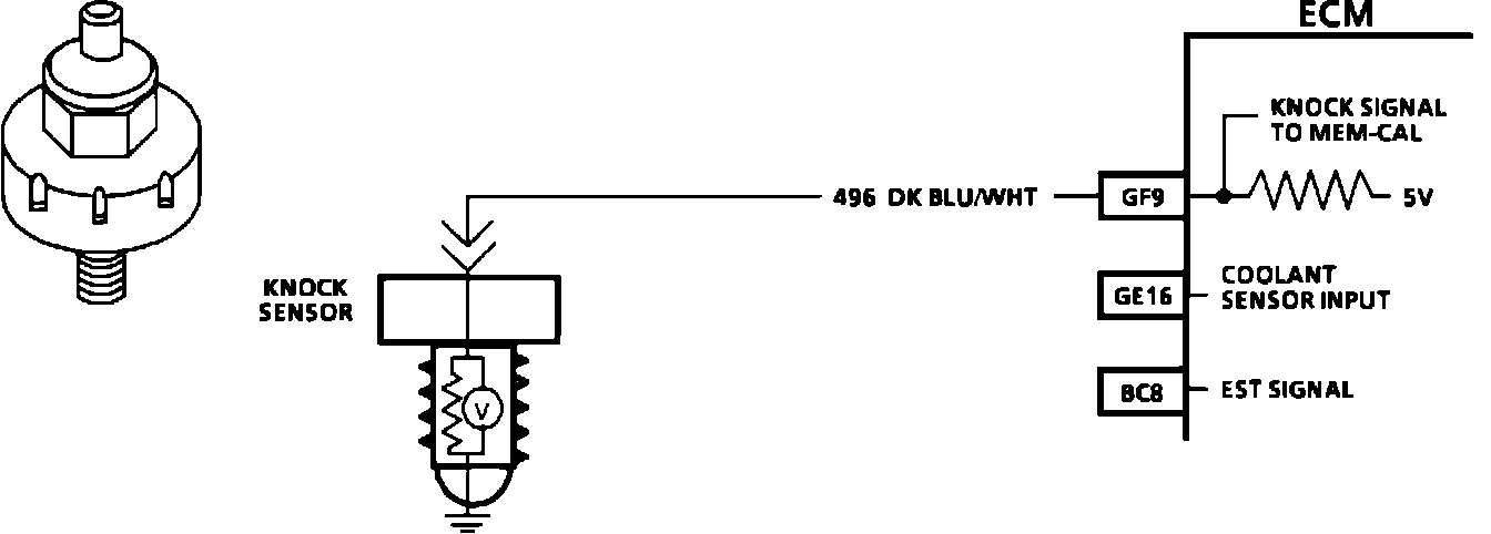 4. This test determines if the knock sensor is faulty or if the ESC portion of the Mem-Cal is faulty. If it is determined that the Mem-Cal is faulty, be sure that it is properly installed and latched into place. If not properly installed, repair and retest.