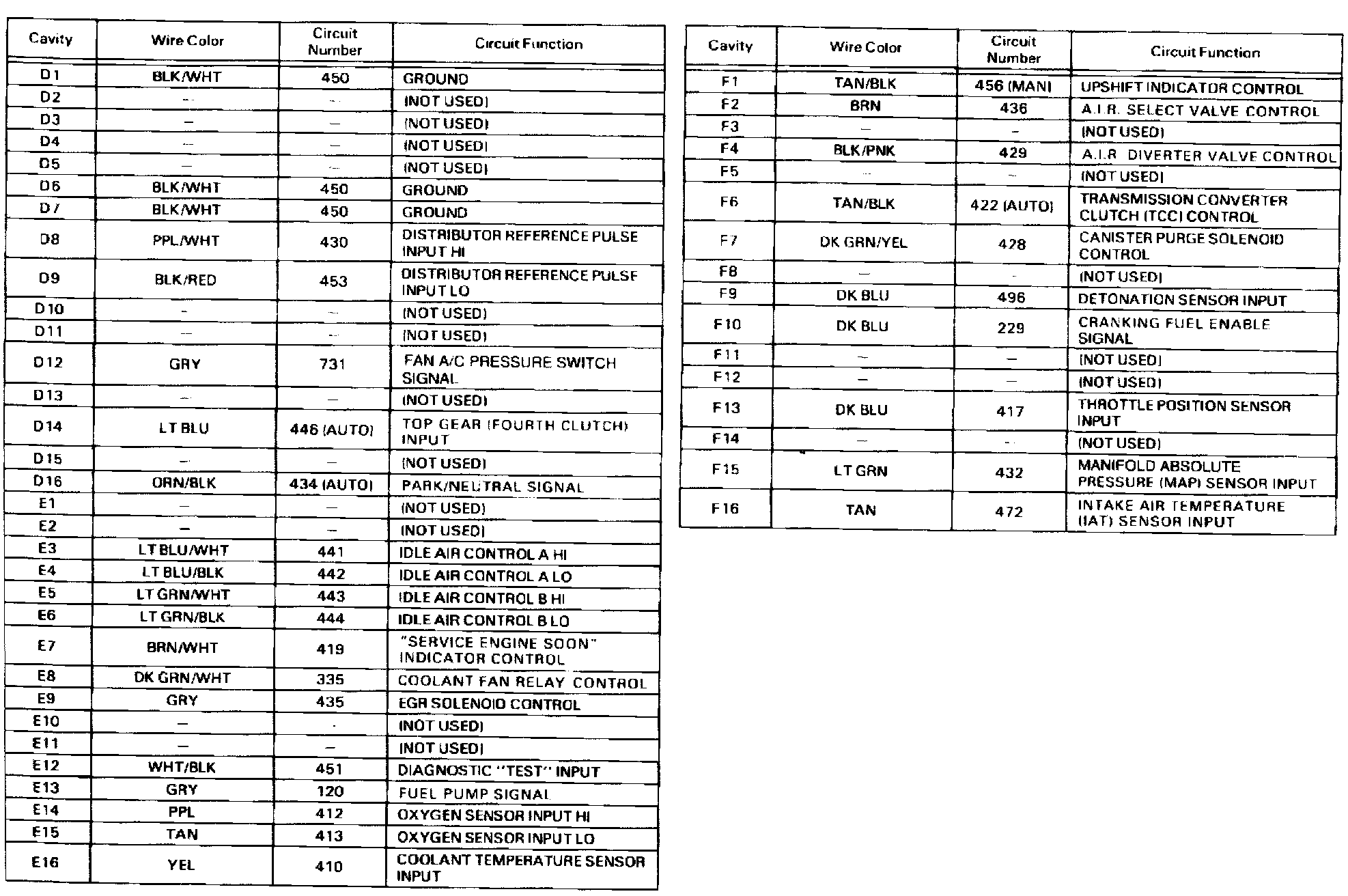 Engine Control Module (ECM) Connectors: