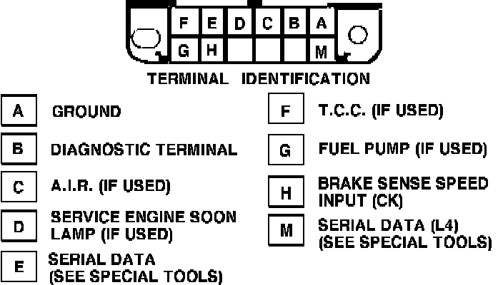 Ground the diagnostic terminal (ALDL terminal A to B). The "SERVICE ENGINE SOON" ("CHECK ENGINE") light should flash a code 12. This is displayed, on the check engine light, by 1 flash followed by a short pause then 2 flashes. This should repeat 3 times. A code 12 should always flash when an on-board diagnostic check is performed. Any other codes, stored in the computer (ECM), will follow a code 12. If any other codes are stored, or code 12 does not flash, or the "CHECK ENGINE" light is on steady, or not at all, see COMPUTERS AND CONTROL SYSTEMS.