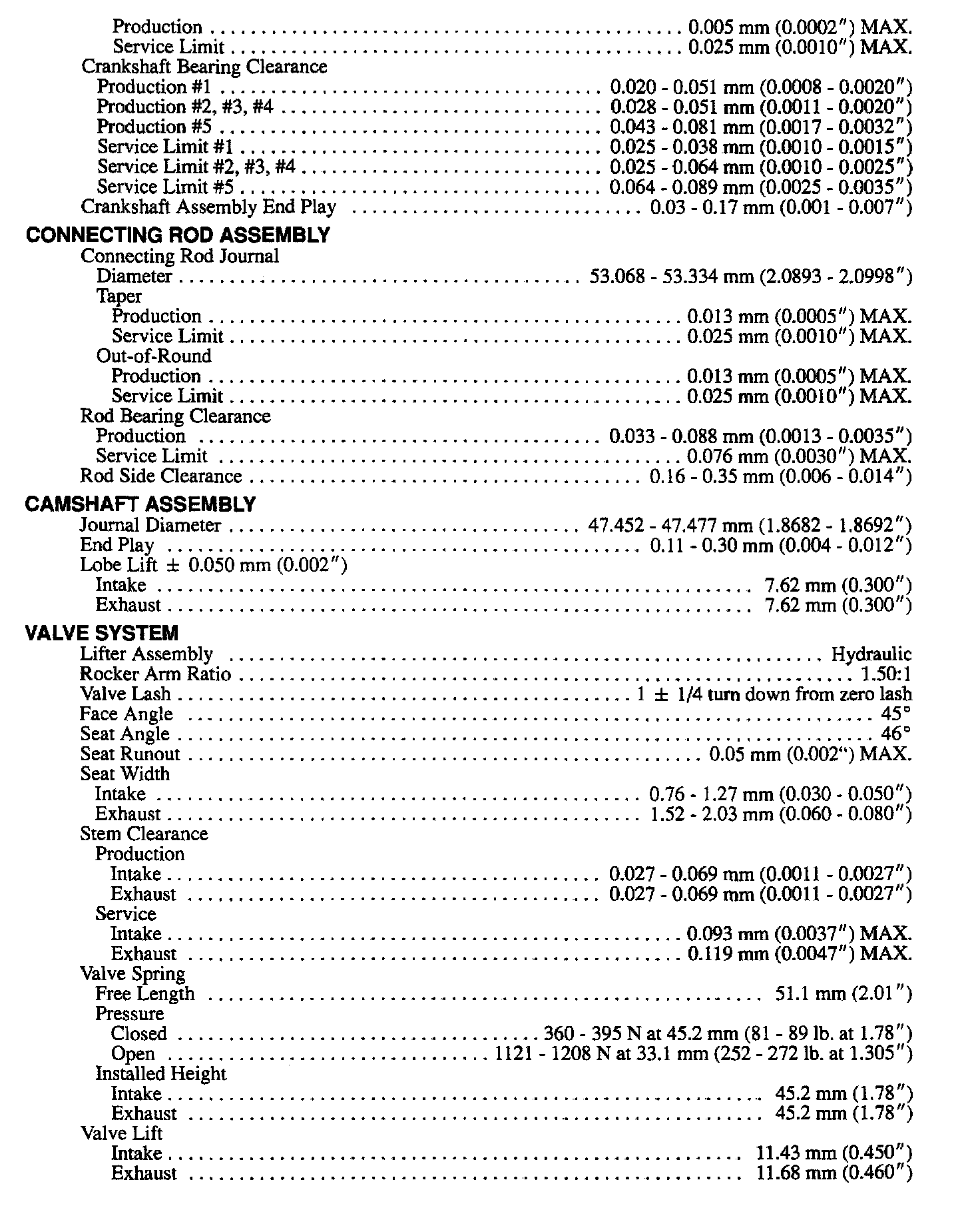 Continued Engine Specifications: