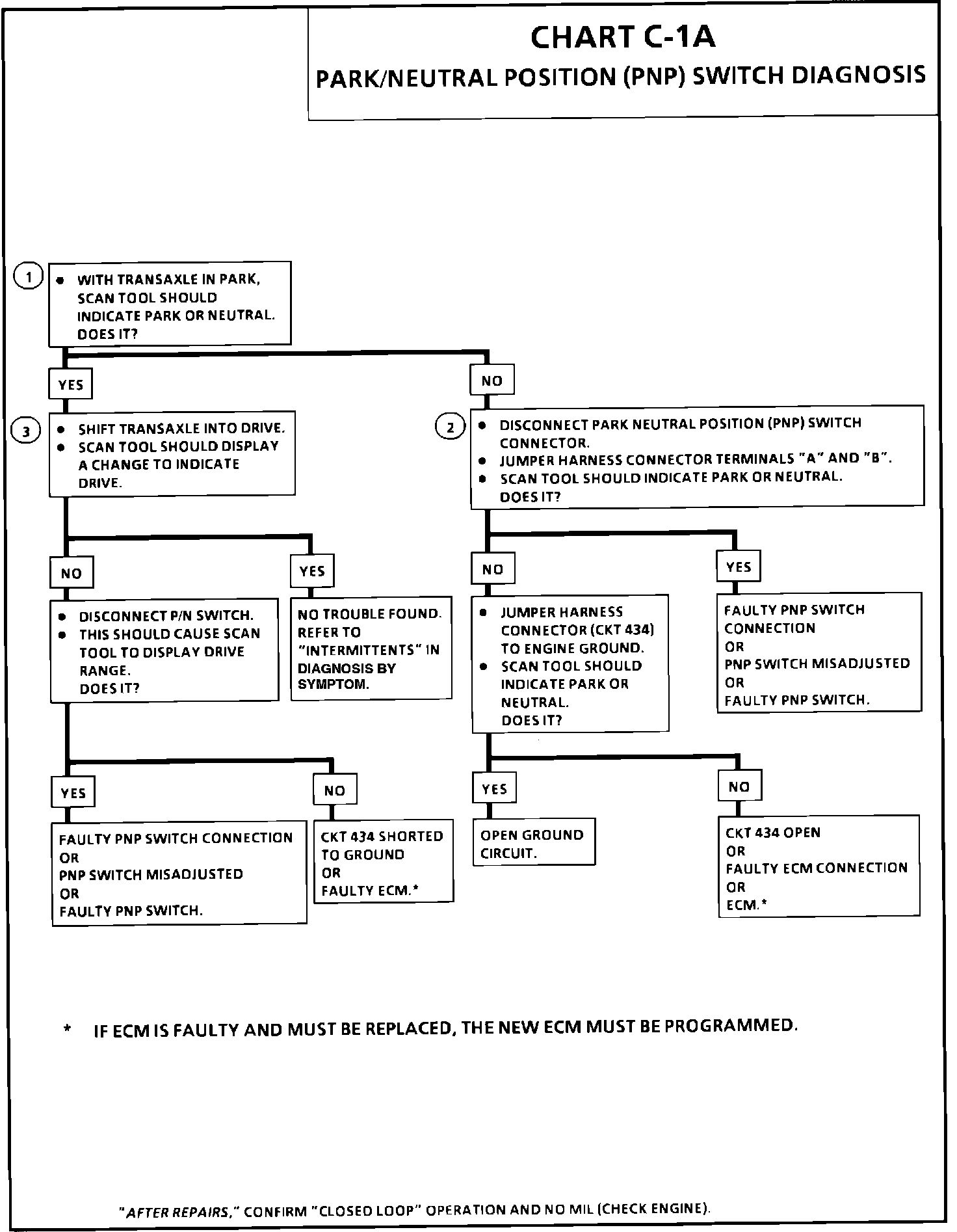 1. Checks for a closed switch to ground in park position. Different makes of scan tools will read PNP switch differently. Refer to tool operations manual for type of display used.